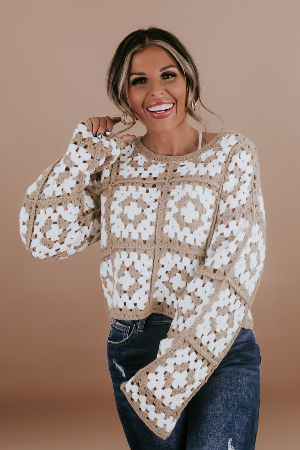 Source : stylecaster.comCatch You Later Crochet Sweater, Taupe โ Everyday Chic Boutique