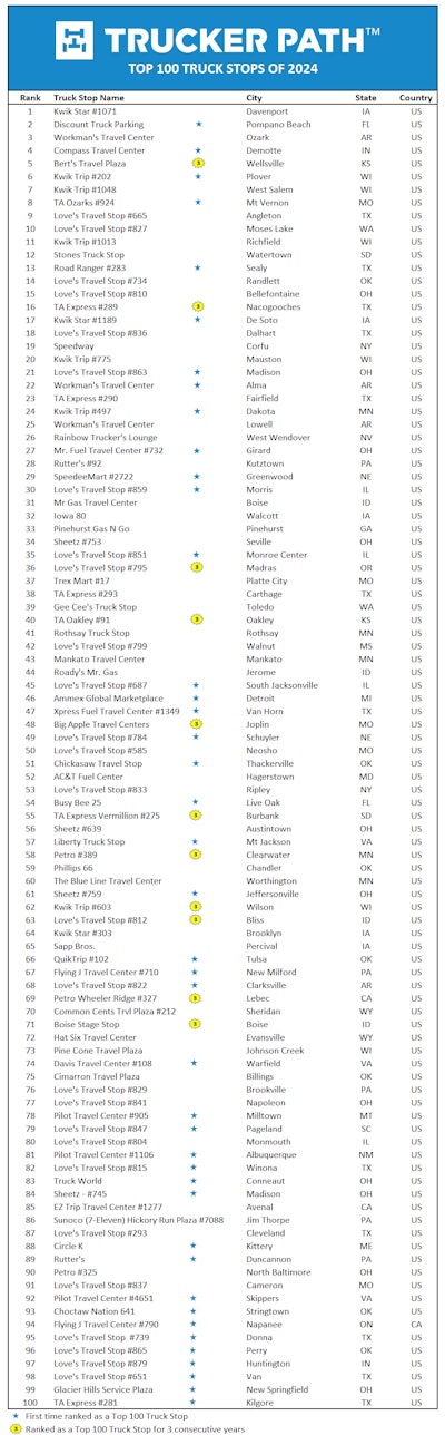Source : newsroom.ryder.comTrucker Path Community Names Top Truck Stops