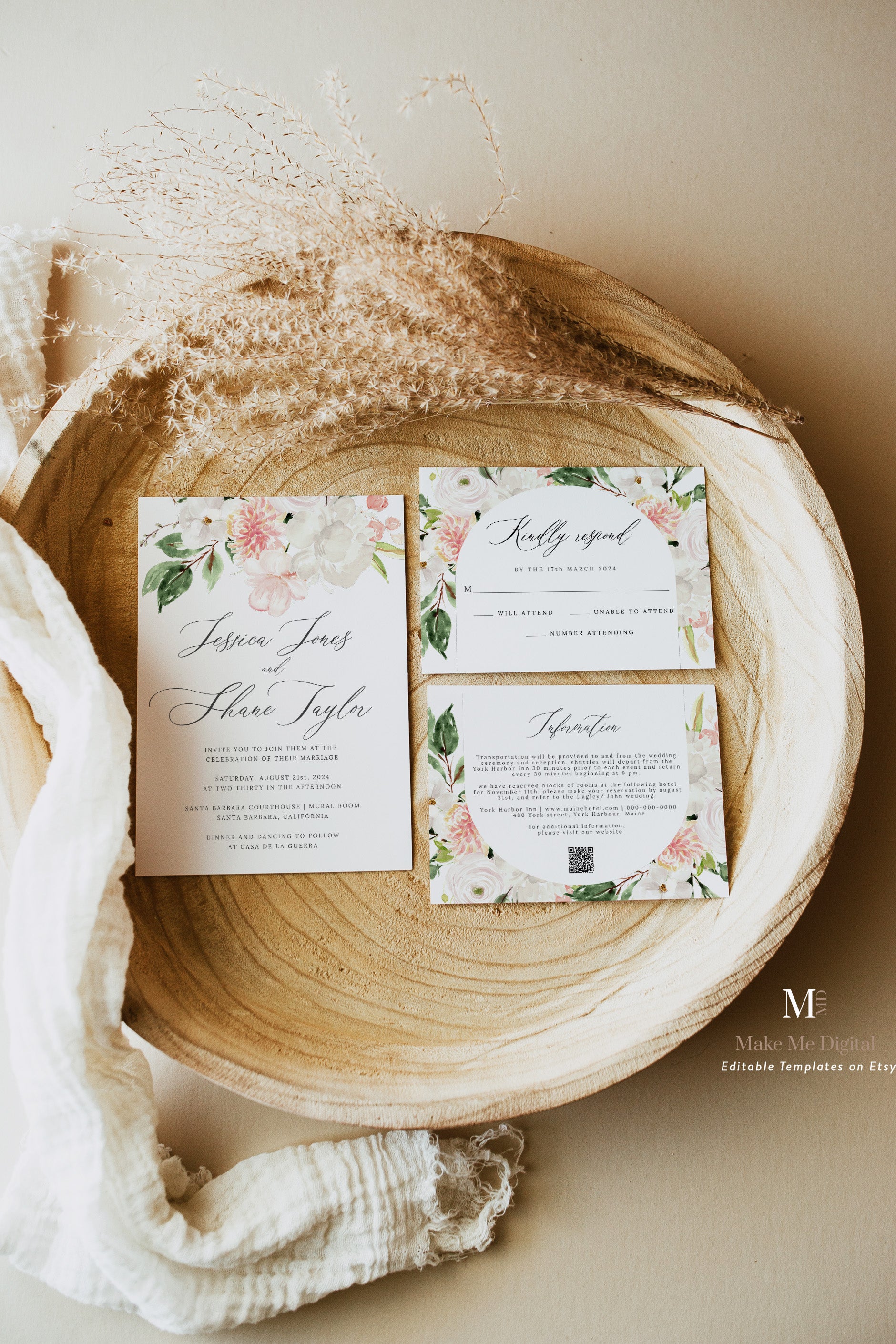 Source : www.etsy.comBlush Pink & White Floral Wedding Invitation Suite โ Make Me